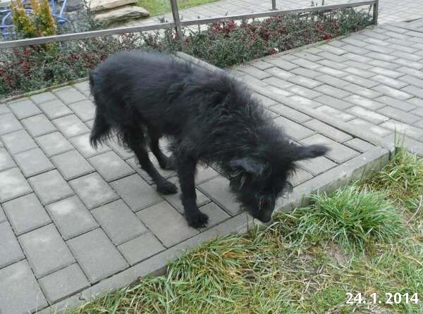 Mates začal mít větší problémy s ovládáním zadních končetin už v listopadu minulého roku. Nejprve začal čůrat jako holka, pak přibyly problémy s chůzí do schodů, pak jsem se ho bála nechat i schody sejít. Po rovině to stále zvládal celkem dobře, takže nastalo jen jeho nošení po schodech. I když Matovi do poslední chvíle chutnalo, postupně slábl i na předek a jeho orientace byla stále horší. Byl už totálně slepý a hluchý, a asi se mu zhoršil i čich. V dubnu už se někdy nemohl z leža postavit . Musel být pod dohledem 24 hodin denně. Hodně mi pomáhala Anička, která hlásila štěkotem každý Matesův problém.