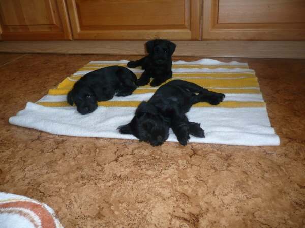 3. 7. 2014 se nám narodila štěňátka knírače malého černého ze spojení Up To Date Androis /Trenda/ a Man in Black Androis. 2 holky a 1 kluk. Porodní váhy - Claudie 250 g, Connie 210 g a Coudy 245g.